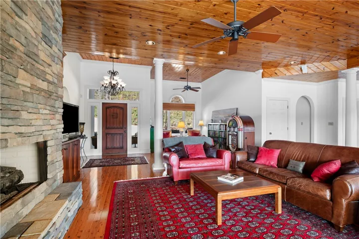 Welcome to this custom-built home located in a premier Russell Lands development on a peninsula. W/ 189 feet of waterfront and views, this 4,400 sq.ft. lake house offers luxury living in 4 beds & 3.5 baths. 3 beds are spacious suite sized rooms & together w/ the open & layout it makes this home perfect for entertaining. The kitchen showcases Viking appliances including a gas cooktop & soft close cabinet doors. A large island w/ seating & a large breakfast nook overlooking the water. Inside the home you can also enjoy 3 ventless gas log fireplaces. The basement offers a large living space including a wet bar & the main floor study could be used as a 5th bed. The dock is built at the max. size permitted by Alabama Power! Not only is the home itself designed to offer the best but the water & privacy are unmatched! At full pool the dock offers 18 feet of DEEP WATER & the land across the creek is Alabama Power forestry land! Plenty of parking is found w/ a 3-car garage & extra parking pad.
