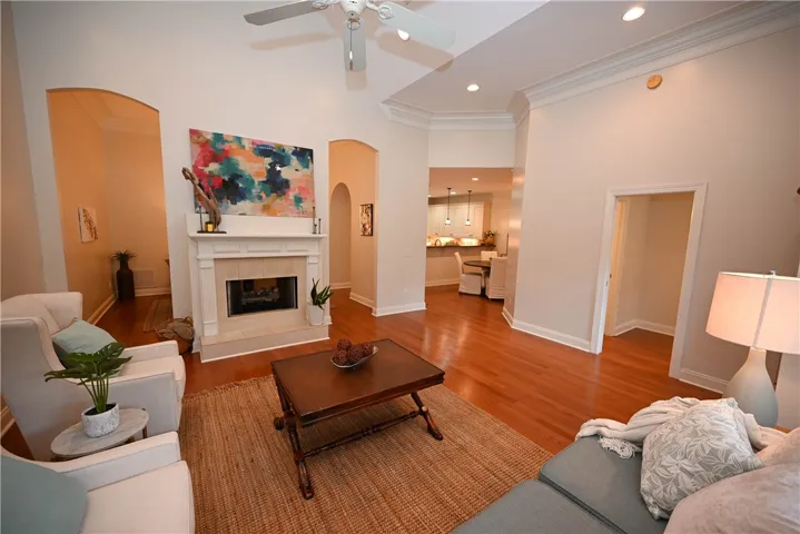 LOCATION! LOCATION! LOCATION! Easy living! Convenient to Auburn University, I-85, Lake Wilmore, Chewacla, dining & shopping! Across the street from Moores Mill Club offering tennis, pickleball, fitness center etc. All one level in a quiet cul-de-sac. Tastefully updated with new paint, new lighting, plantation shutters. New HVAC & roof=easy maintenance. No carpet! No hassle! Covered entry opens to a bright & airy great room with a double-sided gas fireplace. Spacious dining room provides a warm place to gather. Kitchen complete with two pantries, a gas stove, built-in microwave, dishwasher, refrigerator, under-cabinet lighting & backsplash. Primary bedroom boasts recessed lighting, heavy crown molding, an en-suite bathroom & large walk in closet. Primary bath includes an oversized tiled shower, jetted tub & extended vanity for storage. Bedroom 2 also features an en-suite bathroom as well as crown molding & recessed lighting. Two car garage. Enjoy Moores Mill amenities with the neighborhood pool, green space & miles of sidewalks.