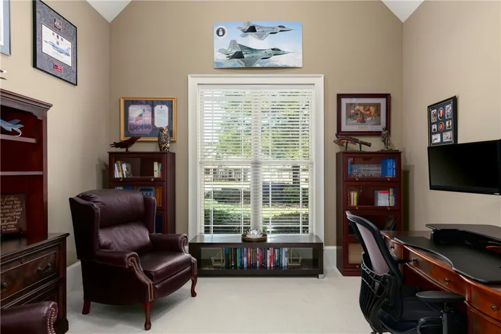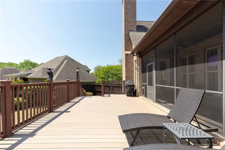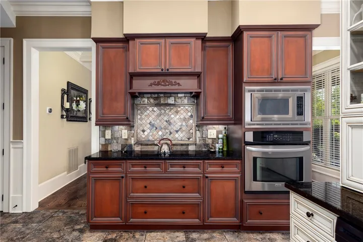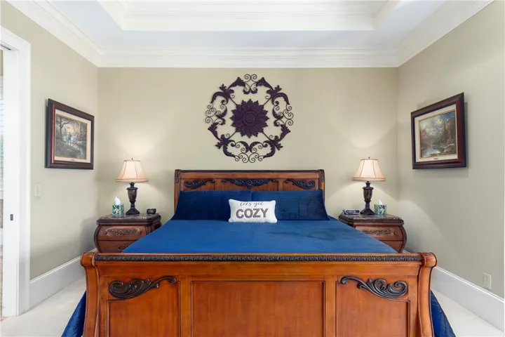 This beautiful custom built home by Bobby Cannon in Asheton Lakes has a wonderful layout that flows nicely for indoor/outdoor entertainment. It is nestled on .43 of an acre with stunning landscaping all around the home along with water features that are calming to listen to while spending time outside. The home boasts of 11 foot ceilings that are coffered, tray and vaulted designs throughout the formal dining room, living room, eat-in kitchen and two bedrooms on the main level. It has a mudroom and laundry room that are directly off of the entrance of the oversized two bay garage and a second laundry room upstairs for the three bedrooms that lead into one of the three walk-in attics. The private backyard has a privacy fence with a gate that opens right up to the green space that surrounds the beautiful and inviting neighborhood pool that makes for an easy transition to go to and from the home and pool.