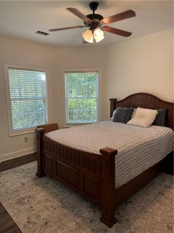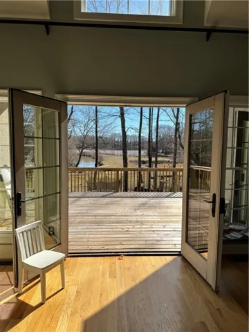 Just off the foyer, the dining room flows seamlessly into the living space, creating an open and inviting layout. The primary bedroom suite is generously sized with a tray ceiling and space for a king-sized bed. The en-suite bathroom offers dual vanities, a jetted tub, and a separate shower, with an adjoining walk-in closet featuring durable metal shelving. Two additional bedrooms share a convenient Jack-and-Jill bathroom, while a fourth room near the foyer serves perfectly as a sitting area, playroom, or office. Downstairs, the finished basement features a large den with a beautiful fireplace, perfect for cozy gatherings. You’ll also find two additional bedrooms, plus a flexible space ideal for a craft room, hobby space, or extra storage. The den has exterior access and opens to a covered patio beneath the upper deck—an ideal spot to relax and enjoy the outdoors. This lakeside home is a rare find—schedule your private tour today!