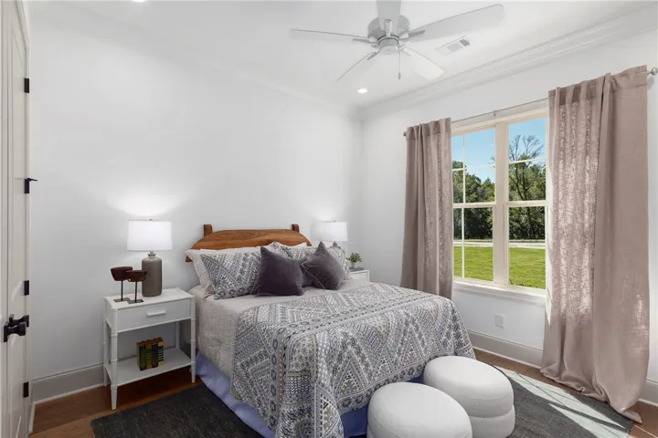 Ready NOW! This Club plan by Toland Construction has soaring 12′ ceilings, a beautiful kitchen for entertaining and a formal dining room to gather with friends and family. The custom built-ins in the master closet are a dream and the master bathroom has split vanities, private water closet, a zero entry shower with a bench, two shower heads and a soaking tub! This home has 1 guest bedroom and bathroom on the first floor and 2 guest bedrooms and bathroom on the 2nd floor with a flex room. Upgrades galore in this home! Hardwood floors throughout the entire house, spray foam insulation, coffered ceiling in the dining room, cast stone fireplace surround, gas cooking, and a tankless hot water heater! Upgrades galore! Must use builder contract.