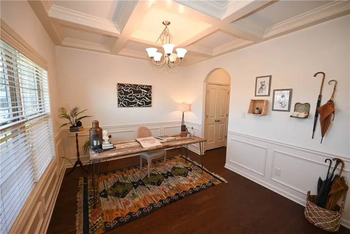 Freshly painted interior and exterior, as well as new carpet! Large corner lot with a fenced back yard. Covered front and back porches! Entryway leads to a formal dining room, which features hardwood floors, judges paneling, double windows and beautiful coffered ceiling! Dining room flows into the kitchen. Kitchen has a new dishwasher, new built in microwave, refrigerator, tiled back splash, granite countertops with undermount sink, recessed lighting & spacious pantry! A sit down bar connects the kitchen to the living room. Also off the kitchen is a breakfast nook overlooking the private back yard. The living room features hardwood floors & a wood burning fireplace. Convenient half bathroom is located off the living room. Huge primary suite with vaulted ceiling & private bathroom. The primary bath includes a soaking tub, double sink vanity with granite countertops, walk in closet, tiled shower and private toilet closet. Three additional bedrooms share a spacious hall bathroom also with granite countertops. Two car garage. Convenient access to I-85, Hwy 280 & the Opelika Sports Plex! Zoned for Southview and Northside schools. Extras include blinds throughout, gutters, refrigerator. Move in ready and ready for a new owner!