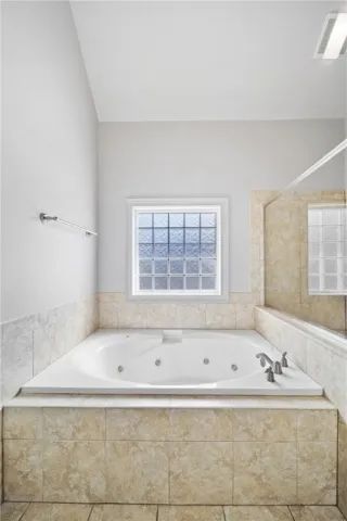 The master bedroom is spacious, highlighted by a double tray ceiling, while the master bath offers an oversized soaking tub, separate shower, and ample space for comfort. A guest suite with vaulted ceiling and adjacent full bath adds convenience and privacy. Upstairs, you’ll find three additional bedrooms and another full bath.