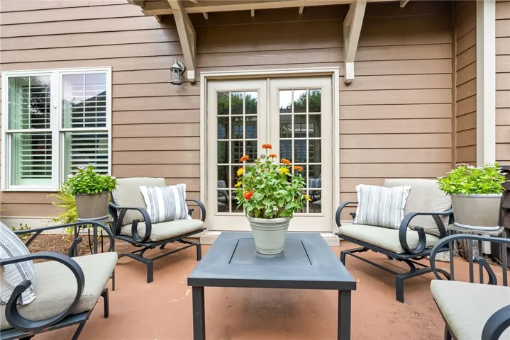 Welcome to this stunning 3-bedroom, 2-bathroom cottage in the desirable National Village community. Step inside from the covered front porch and into a spacious living room featuring a gas fireplace with a built-in bookcase. The main living areas, master bedroom, and master bath all boast elegant 9-foot ceilings and crown molding, while three beautiful wood ceiling beams create a sophisticated, open-concept feel. The chef’s kitchen is a standout with granite countertops, all new Cafe; appliances, and a cozy window seat flanked by two floor-to-ceiling pantries. This home truly combines timeless charm with modern convenience, featuring custom plantation shutters on all windows and a luxurious master suite with a walk-in shower and double vanity.