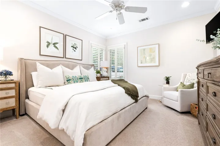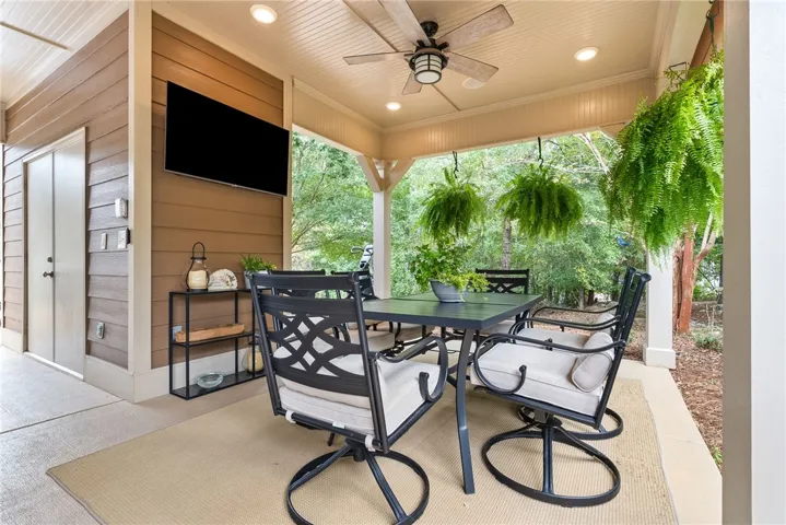 This home is an entertainer’s dream, with a whole-house and patio audio system that has separate controls for different zones. You can enjoy the peaceful, private backyard from the expanded, covered patio, which includes a ceiling fan, a mounted TV, and a gas line for a grill hook-up. The property also features a double carport with two storage units. This is an absolute must-see for anyone looking for elevated living in a friendly and welcoming neighborhood.