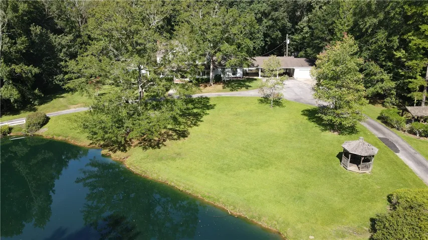 Most people can only dream about a palatial place like this on 5 acres with all the southern charm one can imagine. Just driving in on the circular driveway rounding a beautiful pond and a landscape that is to die for. As you look closer at this property you see a Southern style home with with wrap around porches that face the pond and covered back porches that overlook the private back yard. This home has a 3 bay carport as well as a two car garage. Upon closer inspection one notices a gorgeous salt water pool with separate pool house with full bath and sauna; a pole barn with 3 bays to accommodate a camper/ATV, and an additional workshop with garage door and spacious fenced area for dogs. Moving into the main level on finds a guest bedroom and bath; living room; formal dining room; keeping room and bonus room. The master bedroom is huge with recessed lighting, extra windows, sitting area, walk in closet, private bath, step in shower, jetted tub, double sink vanity & toilet closet. There are additional bedrooms on the second level all with vaulted ceilings providing great light. Stepping into the kitchen one will be awed: sit down bar, roomy pantry , serving bar, window over the sink, breakfast nook, keeping room and all stainless appliances. Laundry room plumbed for a sink and has a laundry chute from the second floor. This home is blessed with tons of storage. Two new HVAC units, new water heater, roof replaced in 2010. This place is to die for; take a look.