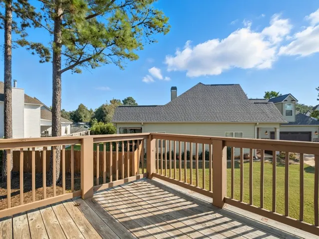 The seller is offering $2,500 in closing cost! This beautifully updated 3-bedroom, 2.5-bathroom home sits on a desirable corner lot in the sought-after Solamere subdivision! The welcoming front porch and charming upper-level balcony set the tone for this inviting property. Step inside to find fresh paint and brand-new flooring throughout the main level, creating a bright and airy atmosphere. The light-filled living room features soaring ceilings, wood burning fireplace, and is open to the large dining room. The kitchen offers ample counter space and cabinetry, plus a pantry. The breakfast room provides access to a patio and the backyard. Convenient for guests, you’ll find a half bath on the main level. The spacious primary suite is a true retreat, featuring a private deck and an updated ensuite bathroom with an oversized shower. Two additional bedrooms share a large bathroom with private water closet. Outside, enjoy the corner lot’s extra space and curb appeal, perfect for outdoor gatherings or quiet evenings on the porch. With its blend of modern updates and inviting outdoor spaces, this home is move-in ready and a true gem!