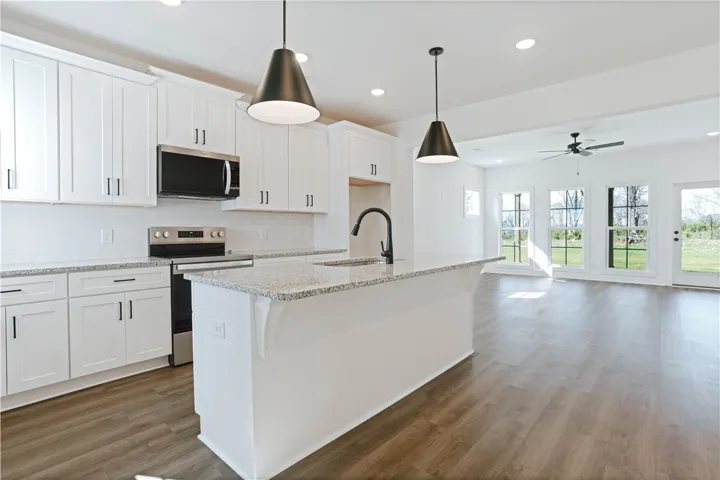 MOVE-IN Ready Home with Walk-In Tile Shower! The Todd B is a 3bedroom, 2bath home with 1395sq ft. The front door opens to a generous foyer with a coat closet. The foyer leads right into open concept living, beginning with the dining area & kitchen. The kitchen features a large granite island, pendant lighting & tile backsplash. Kitchen leads on into the living area, with large windows, flooding the home with natural light. The primary bedroom is located at the back of the home with a private ensuite bath, with a double vanity sink, large walk-in tile shower & walk-in closet. Bedrooms 2 & 3 are at the font of the home, both sharing a full, hallway bathroom. Laundry room found attached to the kitchen, beyond the pantry. Final feature of this home is the covered back porch, perfect spot for enjoying family & friends!