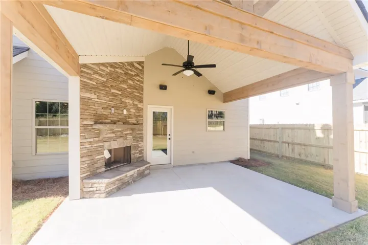 This better than new 4 bedroom/3.5 bath offers the perfect blend of comfort, convenience, and contemporary features. Upon entering the home a large dining room is on your left. You enter into the open concept living room and kitchen with granite countertops and a gas fireplace. The master is on the main with a large bathroom with a garden tub and separate shower. Outside is a fully fenced in yard with a covered patio. It is game-day ready with a tv hookup and a fireplace.