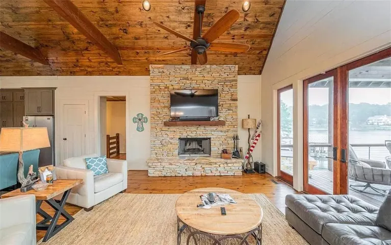 This stunning Lake Martin waterfront home blends craftsmanship and comfort in an elegant lakefront retreat. With 4 bedrooms, 3 baths, and it offers open living spaces with vaulted wood ceilings, a stone fireplace, and large windows showcasing lake views. The kitchen features polished concrete countertops, custom cabinetry, and a spacious island ideal for gatherings. The primary suite provides privacy and a spalike shower enclosure. Outdoor living includes a covered porch, firepit area, terraced stone landscaping, and a double boat dock with lifts. Located in the Shady Bay community near Wind Creek State Park and Alexander City, this home captures the essence of lakeside living with style, tranquility, and thoughtful design. This property is currently operating as a successful short-term rental, generating annual booking revenue. With established marketing, repeat guests, and strong occupancy, it provides immediate income potential.