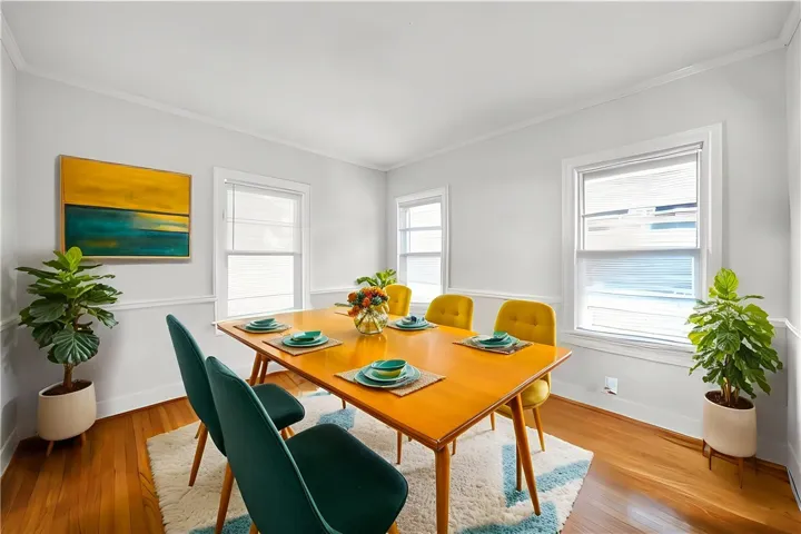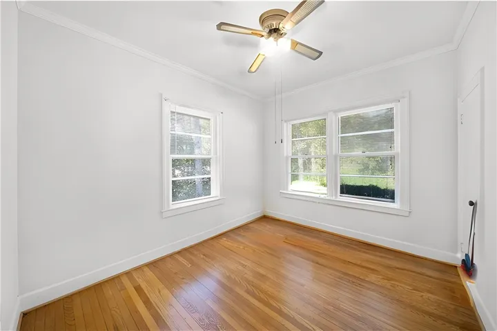 Welcome to this 3-bedroom, 2-bathroom home in the desirable Northside Opelika! Conveniently located near schools, Floral Park, and Historic Downtown Opelika. A brick pathway leads you to the welcoming front door and into an inviting foyer complete with a coat closet. The formal dining room features crown and chair molding along with a vintage stained-glass light fixture, creating the perfect space for entertaining. The living room showcases beautiful windows, a wood-burning fireplace with a marble and brass surround, built-in shelving, and elegant crown molding. Just beyond, the sunroom offers an abundance of natural light — an ideal spot for morning coffee or a good book. The primary bedroom has private deck access and an ensuite bath featuring a theatrically inspired makeup station. Two additional bedrooms share a charming black-and-white tiled guest bath. Basement Garage with back entrance with double doors and secured side door entrance. Back Patio. Additional highlights include gorgeous wood floors throughout, oversized baseboards, a dedicated laundry room, ceiling fans, outside motion detectors, gutters, cage on the chimney, extra space in the crawl space, attic storage.