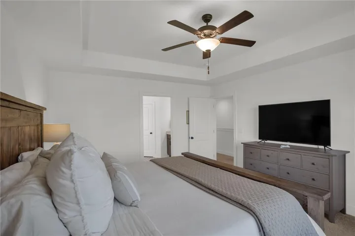 Step inside to find a bright, open layout featuring a dedicated home office or formal living room, a formal dining room, and an inviting eat-in kitchen complete with quartz countertops, a 5-eye gas range, and walk-in pantry. The main living area centers around a gas fireplace, ideal for gathering with family and friends. Upstairs, all five bedrooms are thoughtfully situated along with a loft—perfect for a playroom, media space, or secondary living area. The primary suite includes double closets, soaking tub, and separate shower, offering a relaxing retreat. You’ll also appreciate the convenience of an upstairs laundry room. Outside, the curb appeal shines with blooming rose bushes and porch swing. Tucked at the end of a quiet cul-de-sac, this location offers peace, safety, and minimal traffic. As a bonus, just steps from your front door you’ll find direct trail access to Chewacla State Park, making outdoor adventures effortless. Additional features include a SimpliSafe alarm system that conveys with the sale.