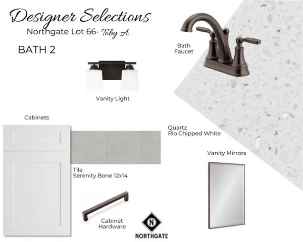 Designer Toby A, on Lot 66. Move-in February 2026! The Toby A is a beautiful 3 bedroom, 2 bathroom, 1391 square foot home with a front entry single car garage. The entry way opens up into a foyer that leads on one side to the two guest bedrooms with a shared full bathroom, and on the other side into the open concept kitchen, living, and dining areas. The kitchen features a large island with plenty of cabinet space. Just off of the kitchen is the laundry room, which leads into the front entry garage. The kitchen flows into the living area that features floor to ceiling windows and access to the covered back porch. The primary suite sits at the back of the home and features a private en-suite with a large walk in closet and private walk-in shower with a double vanity.