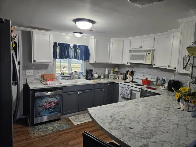 Nestled on a spacious one-acre lot, this charming two-bedroom, one-and-a-half-bath home has been beautifully remodeled from the studs up just three years ago. Enjoy modern comfort with updated finishes throughout. The kitchen comes complete with a stove, refrigerator, and dishwasher, microwave, and the washer and dryer are also included—making this home truly move-in ready. Storage Building to convey with the property. Property being sold “AS IS”.