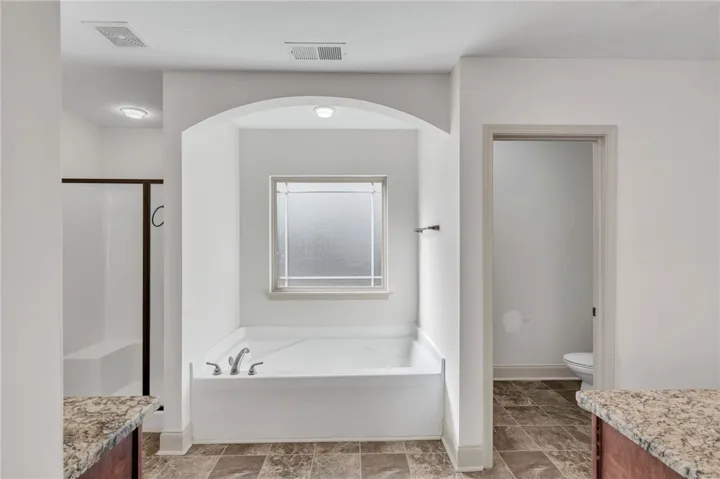 Step inside to discover an inviting open floor plan designed for modern living — featuring a spacious living area, a well-appointed kitchen with beautiful cabinetry, stainless appliances, granite countertops and plenty of natural light throughout. The primary suite includes a private bath with separate sinks and those beautiful granite countertops. You will enjoy generous closet space featuring separate his and her closets, creating the perfect retreat after a long day.