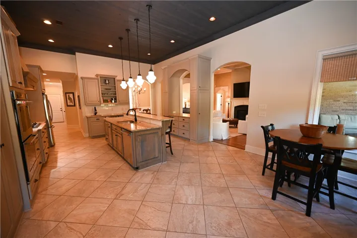 SUCH a great floorplan & VERY well-maintained! 4 bedrooms & 3 bathrooms on the main level with a large bonus room & full bathroom upstairs! Thoughtful design by Landmark with so much attention to detail throughout. Formal dining room opens to the living room & the kitchen. Kitchen features custom cabinetry, double ovens, a gas cook top, beverage frig, ice maker, hammered copper prep sink, built ins & tons of drawers & cabinets for storage! Keeping room off the kitchen enjoys a gas log fireplace as well as large picture windows providing natural light. This multi-purpose space could serve as another living room/play area/craft area with a big farmhouse table! Living room boasts coffered ceiling, gas log fireplace & windows overlooking the covered and uncovered patios in the back! Back patio also enjoys a woodburning fireplace with a gas starter perfect for crisp fall evenings! Primary suite is very spacious & has a lovely en-suite bath complete with tiled step in shower, soaking tub, double sink extended vanities, custom structured shelving in the closet & a private water closet. Bedrooms 2 & 3 are spacious & share a Jack-N-Jill bathroom. Bedroom 4 is currently being used as an office & has a nice walk in closet. Great laundry with cabinetry. Double garage with an added golf cart bay/workshop area- both with insulated garage doors. Spray foam insulation, tankless hot water heater- all great energy saving features! More of the extras include an irrigation system, ZERO carpet throughout, plantation shutters, & Roman shades. Just down from East Lake neighborhood pool & clubhouse. Around the corner from Publix at Hamilton Place, CVS, Lucy’s, One Bike Coffee & more! Convenient also to Moores Mill Golf Club, Auburn University, I-85 & Tiger Town!